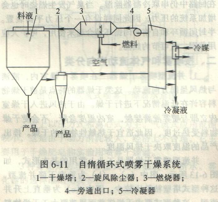 (噴霧干燥機)半封閉循環系統,一般用于以水作為懸浮介質的物料,如單細胞蛋白、酵母、菌絲體等料液的干燥。這種系統從本質上來看仍然像封閉循環式干燥系統,在回路中仍串聯冷凝劑除濕。當臭氣發生燃燒時也會增加系統的壓力,因此同樣設有一個壓力平衡裝置。半封閉循環和自惰封閉循環結合起來使用,可擴大應用范圍,且可節約熱能。